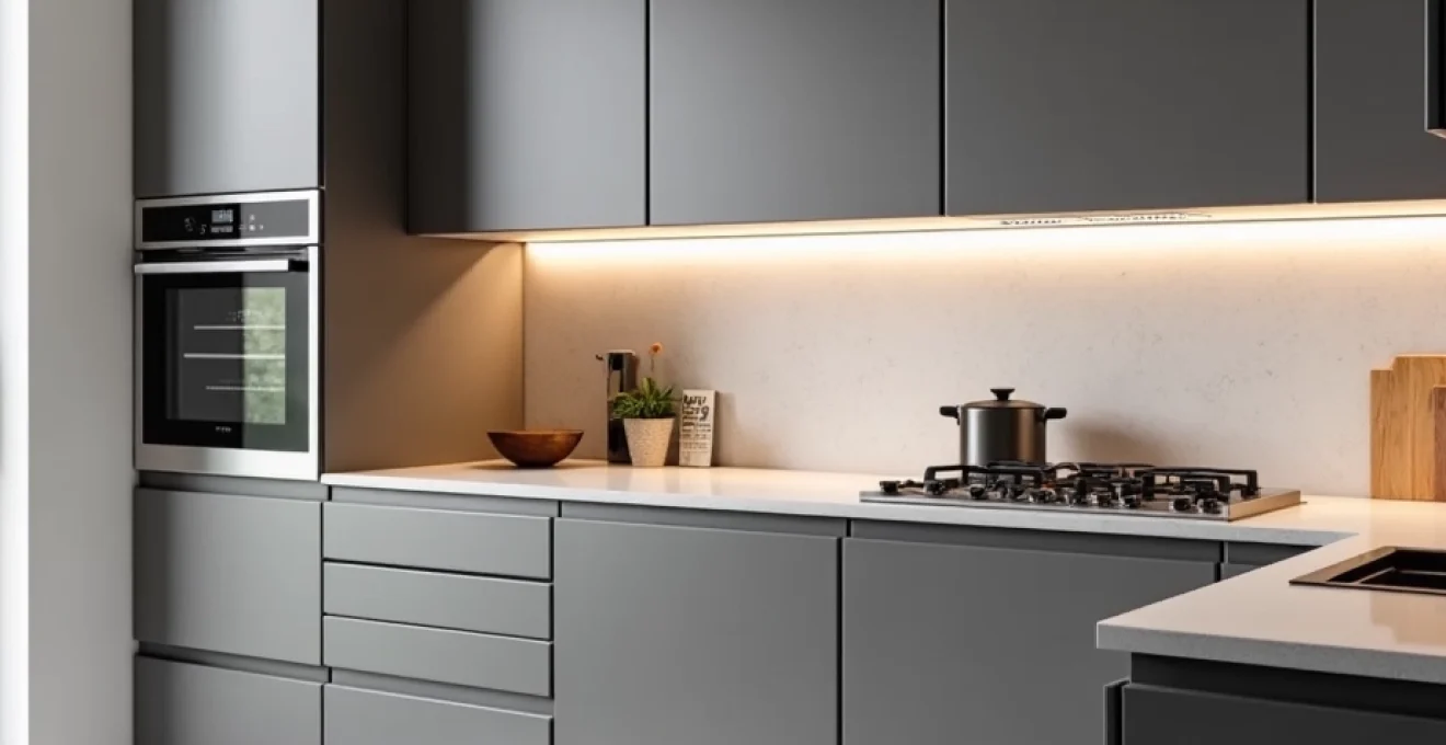 L’élimination des poignées crée une surface lisse et uniforme, donnant l’illusion d’un mur de meubles sans interruption.